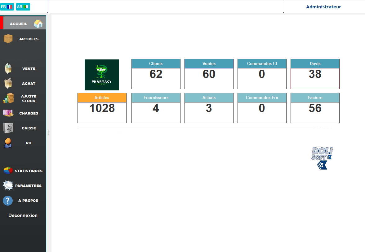 Dolisoft Parapharmacie vous permet de suivre vos produits sensibles, dâĂ©viter les ruptures de stock et dâautomatiser vos ventes avec TVA. Une interface bilingue (français / arabe), simple et professionnelle, accessible Ă tous les utilisateurs.