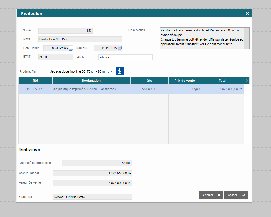 🧾 تسيير دورة الإنتاج
