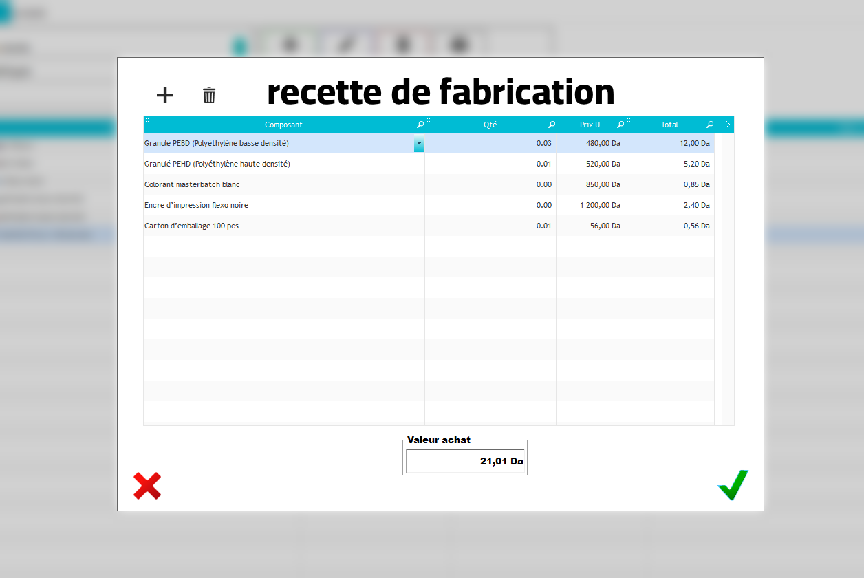 - إعداد وصفات إنتاج تربط كل منتج بمواده الأولية.